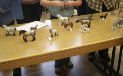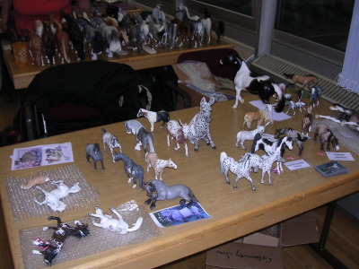 Bei einer Bekannten habe ich den Lipizzaner Hengst von 2004 gesehen und er hat mir so gut gefallen, dass ich ihn und den schwarzen steigenden Hengst gekauft habe. Dann habe ich bei ebay immer mehr Schleichpferde gekauft, darunter waren auch einige die wirklich stark bespielt waren. Also nicht wie in der Beschreibung stand " guter Zustand ", na ja das ist relativ.