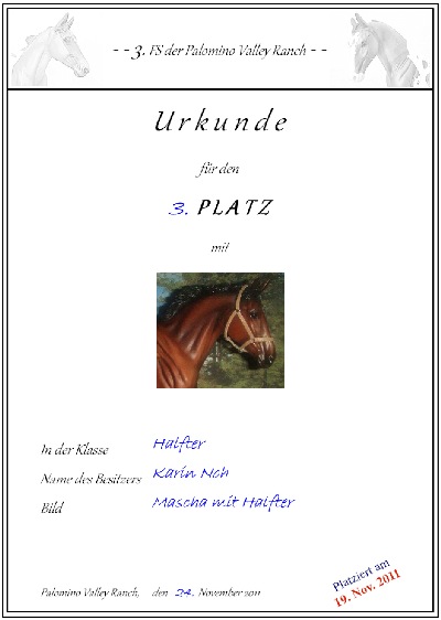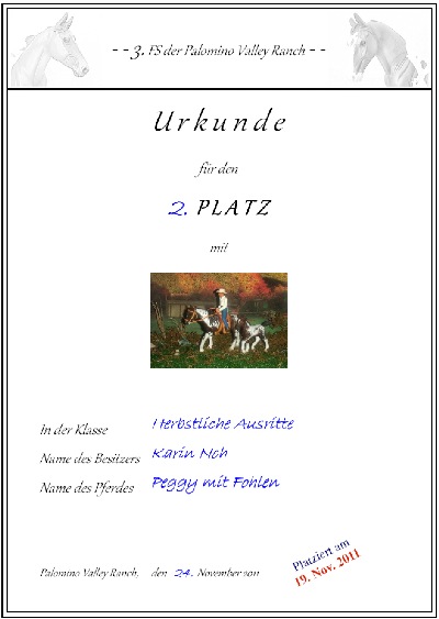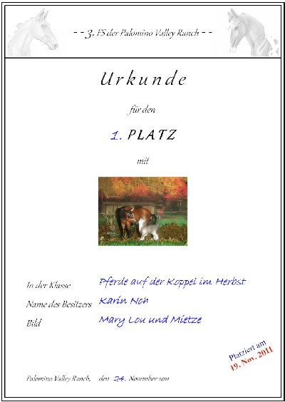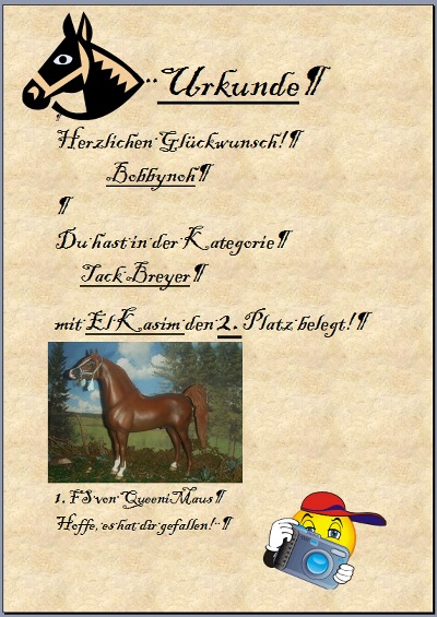 An einigen Foto Shows habe ich mit meinen Pferden schon teilgenommen, mit Cust und auch mit meinen OF's, mit denen ich gute Platzierungen hatte.