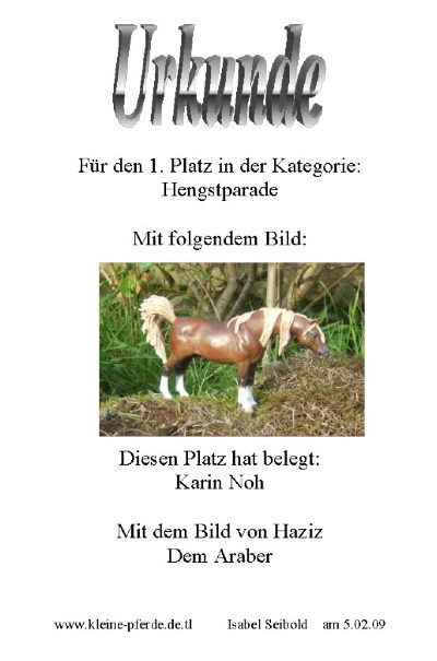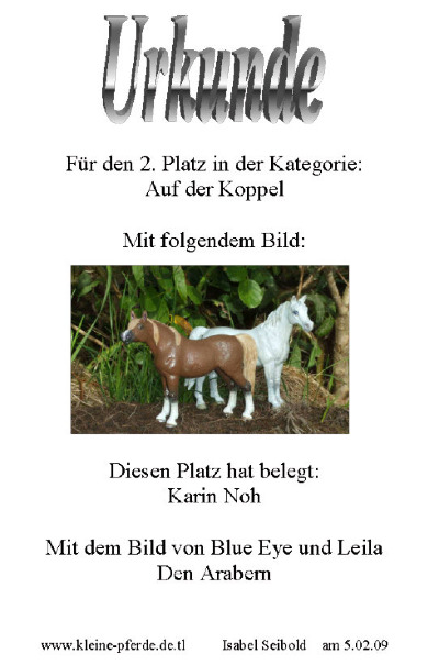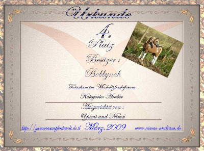 Diese Araberstute hat in Morsbach 2009 den 4. Platz in ihrer Klasse belegt, sie ist im besitzt von Denise Rademacher, die leider zur Zeit keine Homepage hat.