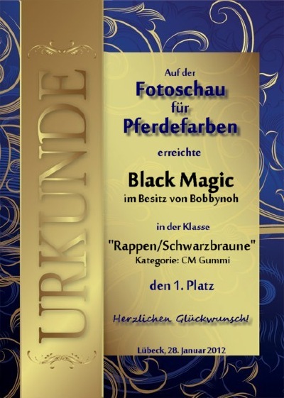 Black Magic hat auf der LS Hannover 2011, bei den Vollblütern Platz 1 belegt und Platz 2 bei der Champwahl