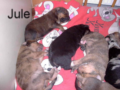Das ist sie mit Ihren Geschwister im Dezember 2002, vielleicht erkennt ja jemand seinen Welpen von damals, ich würde mich über eine Nachricht freuen.