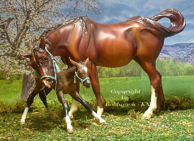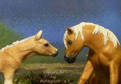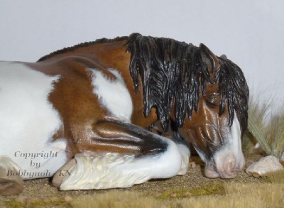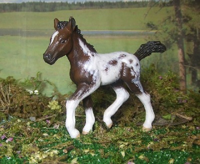 Das ist Happy, das Fohlen wurde von Uschi Apelt unter dem Namen Hope modelliert, sie hat es als Resin gießen lassen, wurde dann von mir dann bemalt.