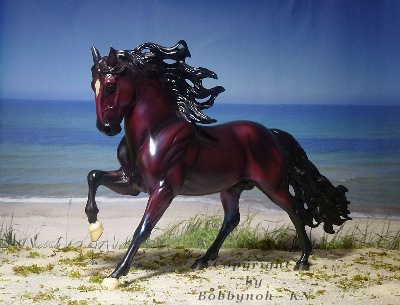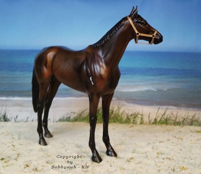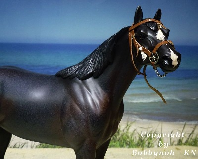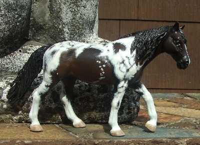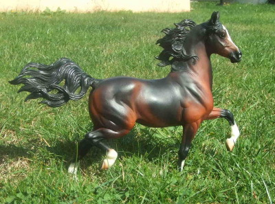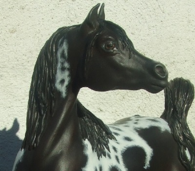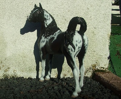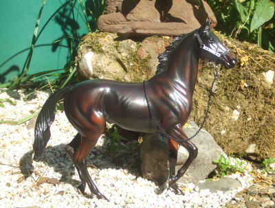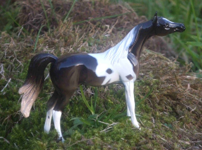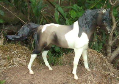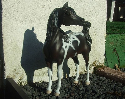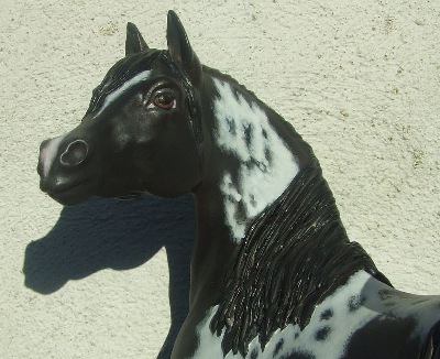 Das ist Thunder mein 3ter Breyer Cust, ihn habe ich als Custbody gekauft, die Gußnähte ich habe entfernt und die Ohren ausgebohrt, dann wurde er mit Arcrylfarben bemalt und mit Pastellkreide schattiert.(er ist in meinem Besitz)