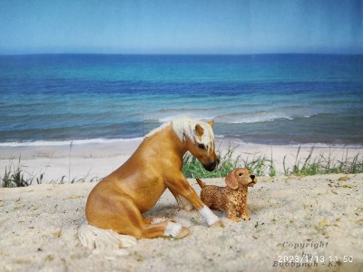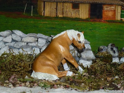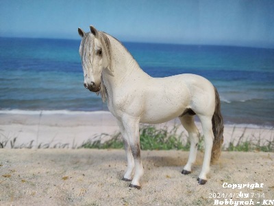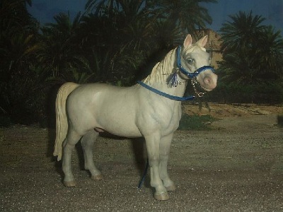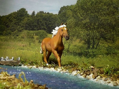 Das ist der Cremello Snowdancer(2008), der sollte zuerst verkauft werden, aber dann habe ich mich in ihn verliebt, aus dem Wallach wurde ein Hengst und die Schleichschrift unten auf dem Bauch habe ich auch entfernt. Er bekommt jetzt eine Stute und ein Fohlen, dann hat er eine kleine Cremello Familie, wenn die fertig ist gibt es neue Fotos.