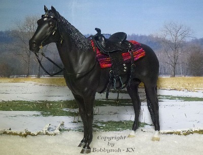 Highland Dale, war ein sehr bekanntes Filmpferd, man kennt ihn als Fury(TV Serie)oder auch Gypsy(Treue/Gypsy Colt), er hat in vielen Filmen in den 50ziger und 60iger Jahren mit gespielt, ein wunder schöner Rappe Ausgangsmodell war die Breyer Halla