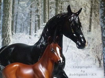 Breyer Classic (1:12) 62042 - Raven Black Morgan Stute und Red Bay Fohlen (ein Geschenk von meinem lieben Freund Chris)